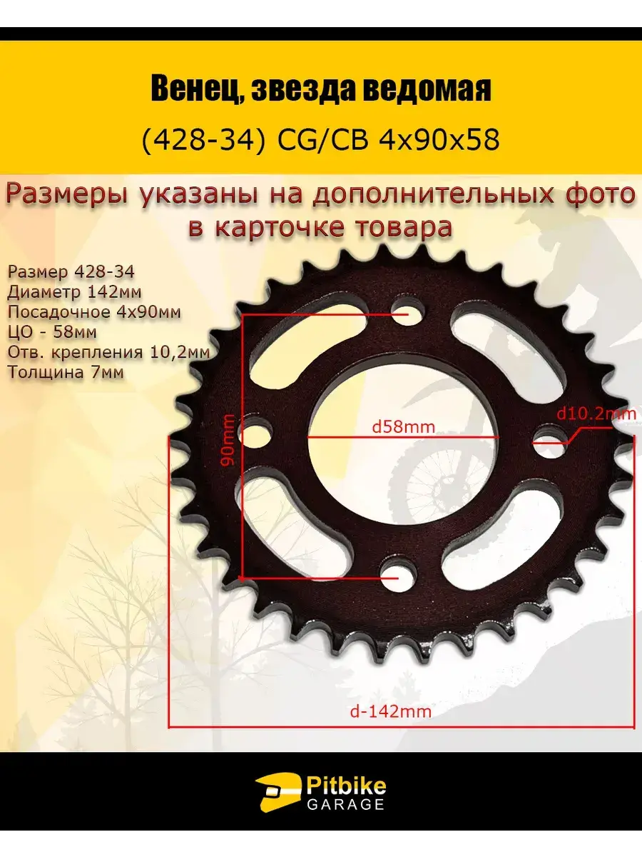 Венец, звезда ведомая (428-34) CG/CB 4х90х58 красная 1 штука