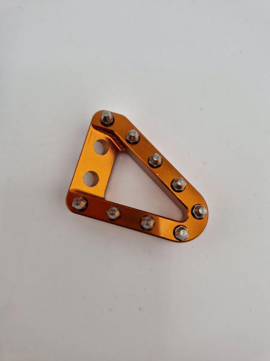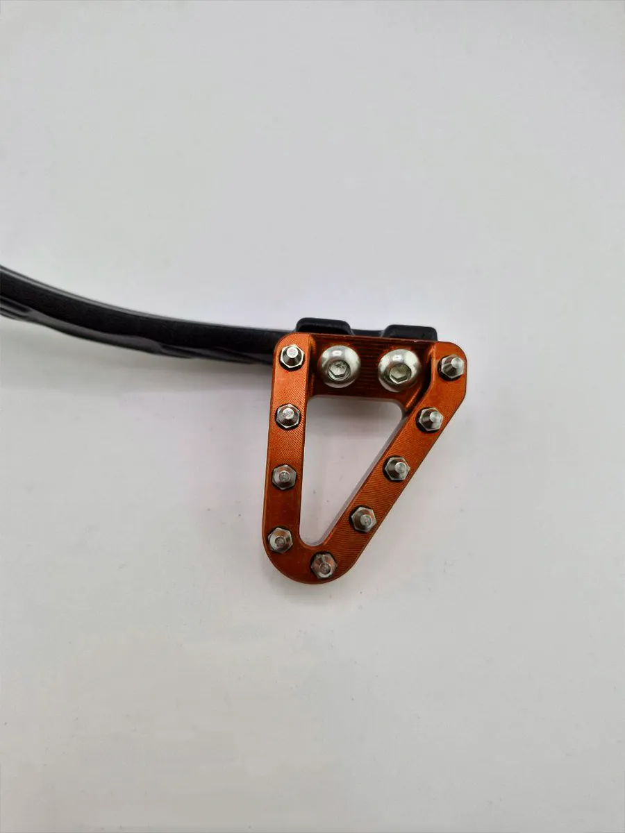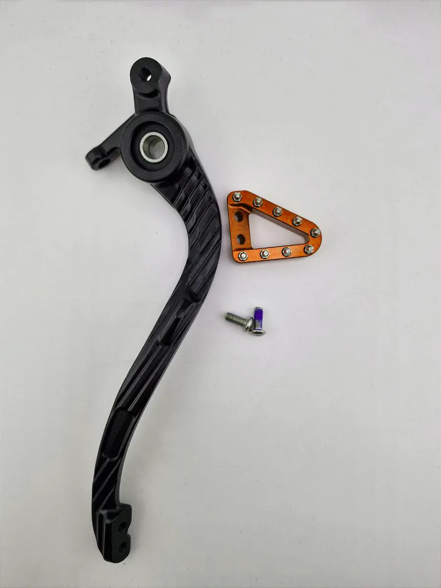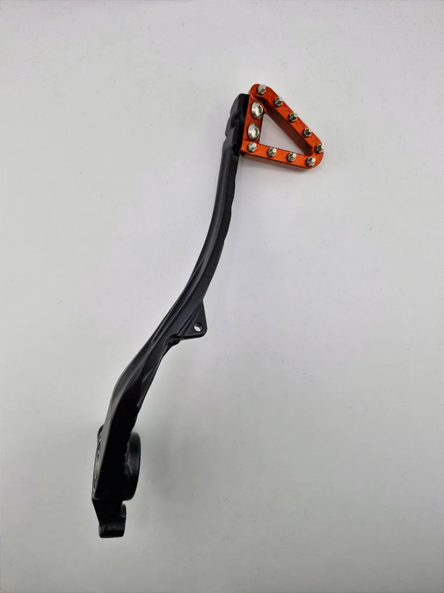 Усиленный рычаг заднего тормоза для мотоциклов KTM — идеальное решение для замены штатной детали. Обеспечивает надежность, точность торможения и яркий внешний вид за счёт оранжевой (золотой) анодированной накладки с шипами.