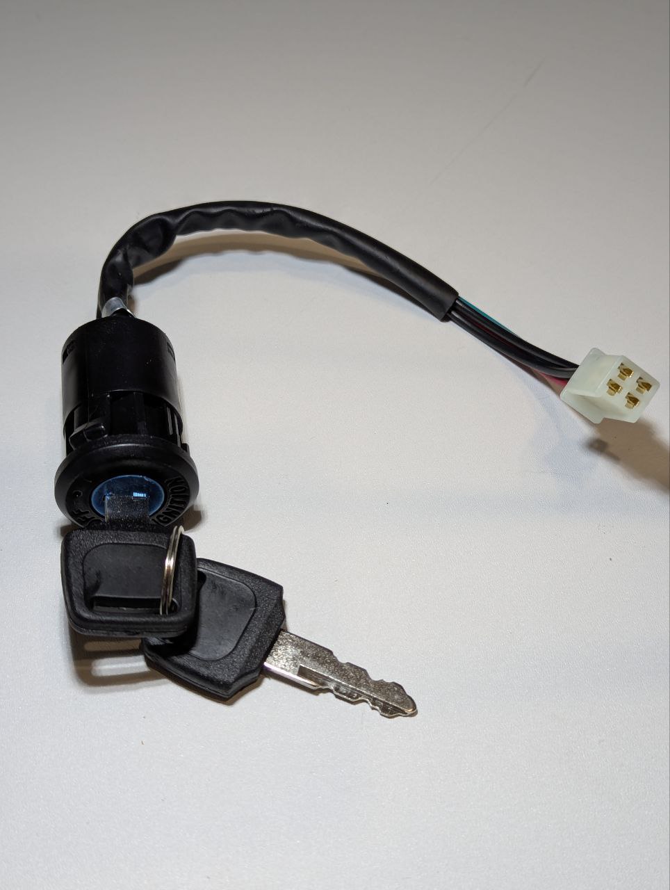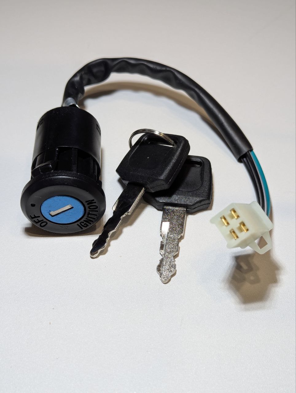 Замок зажигания для мотоцикла, питбайка, эндуро (2 положения, с ключом) — мотозапчасть или аксессуар для мотоцикла. Используется для ремонта, замены и регулярного обслуживания. Обеспечивает стабильную работу и длительный срок службы. Замок зажигания для питбайка, эндуро, кроссового мотоцикла с разъемом 4 pin и длиной провода 18 см — это универсальное решение для большинства китайских моделей мототехники. Он обеспечивает надежную защиту от несанкционированного запуска двигателя и легкость в установке.