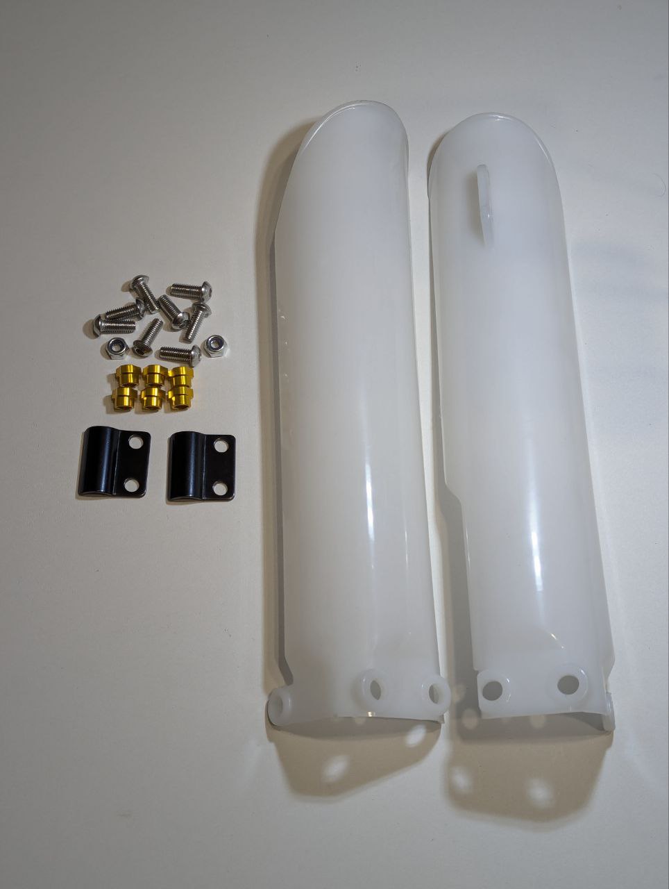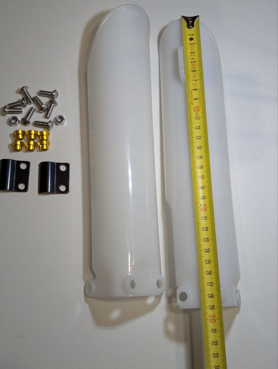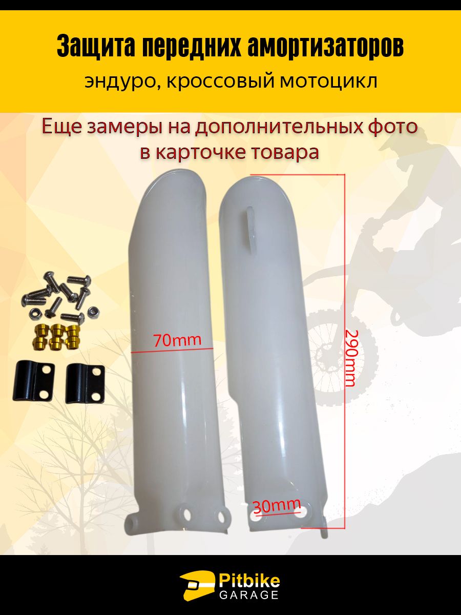Защита пера эндуро. Пластик для вилки эндуро мотоцикла 290мм белый — мотозапчасть или аксессуар для мотоцикла. Используется для ремонта, замены и регулярного обслуживания. Обеспечивает стабильную работу и длительный срок службы. Комплект защиты передней вилки для эндуро/кросс мотоциклов — забудьте о трещинах и грязи