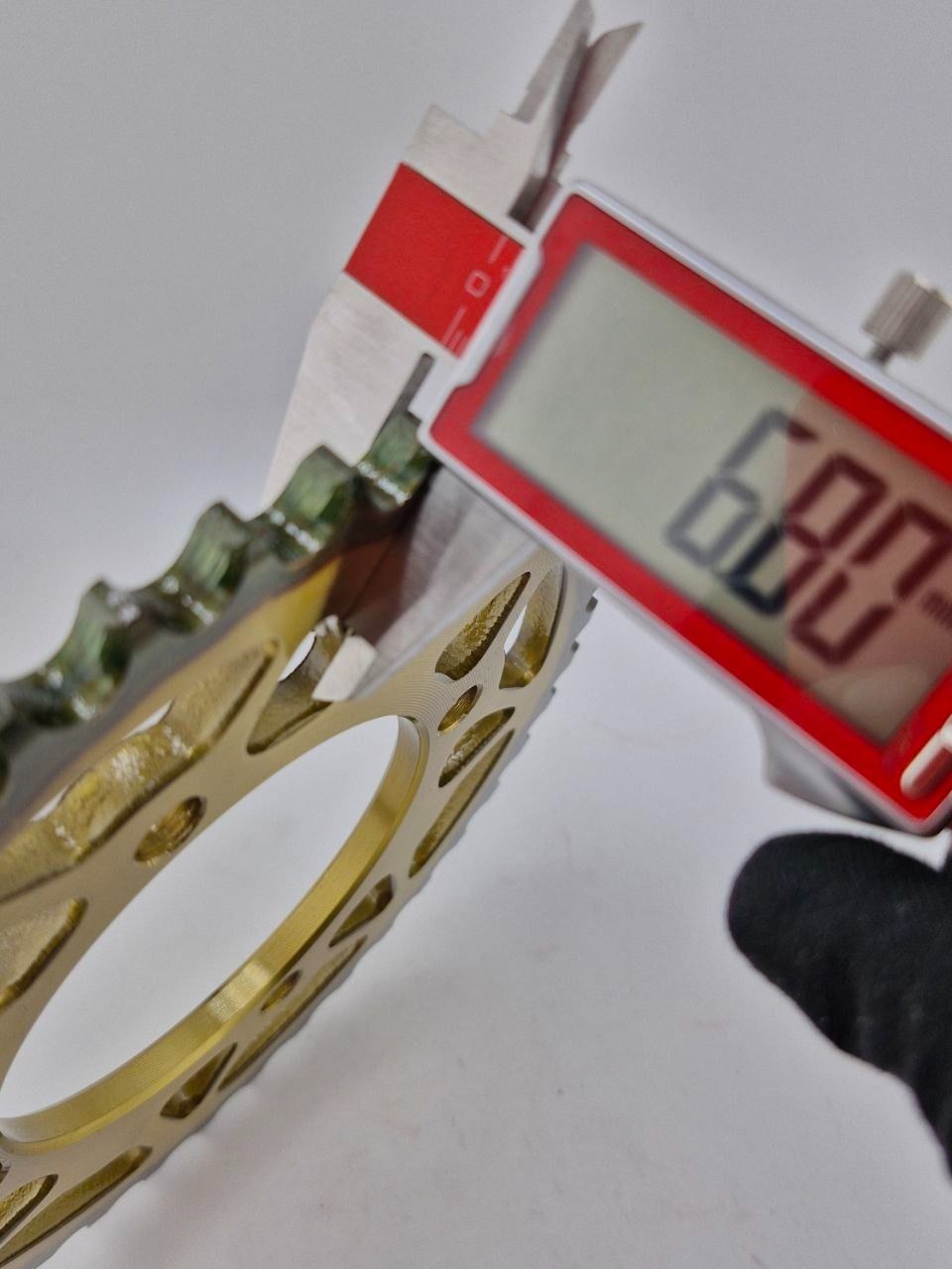 Зубья венца обработаны специальной технологией, что обеспечивает их исключительную прочность и устойчивость к износу. Это позволяет вам эксплуатировать ваш питбайк на пределе его возможностей, не беспокоясь о проблемах с трансмиссией.