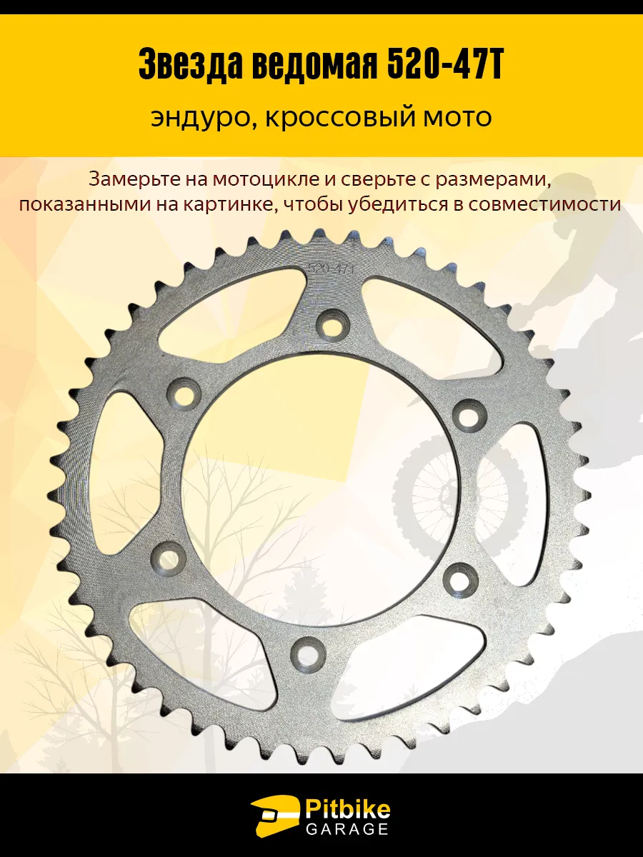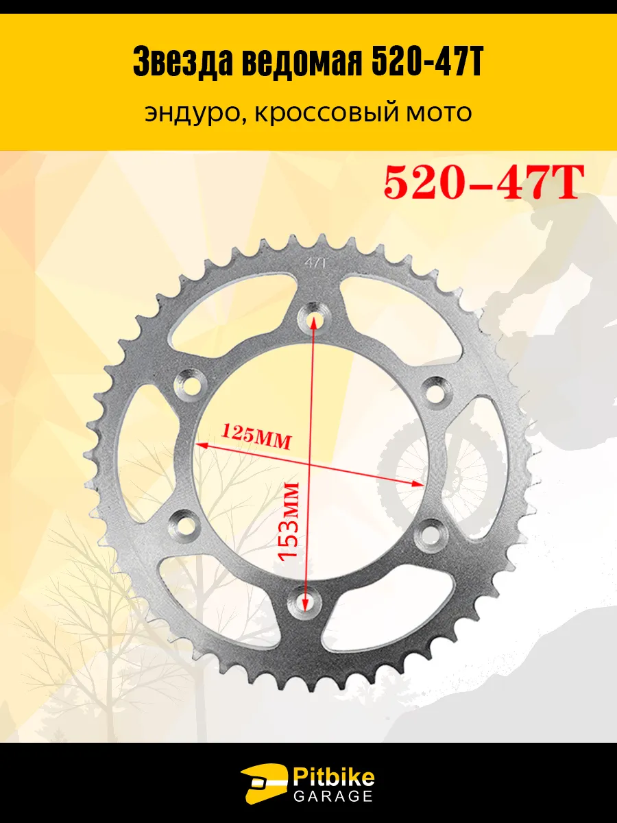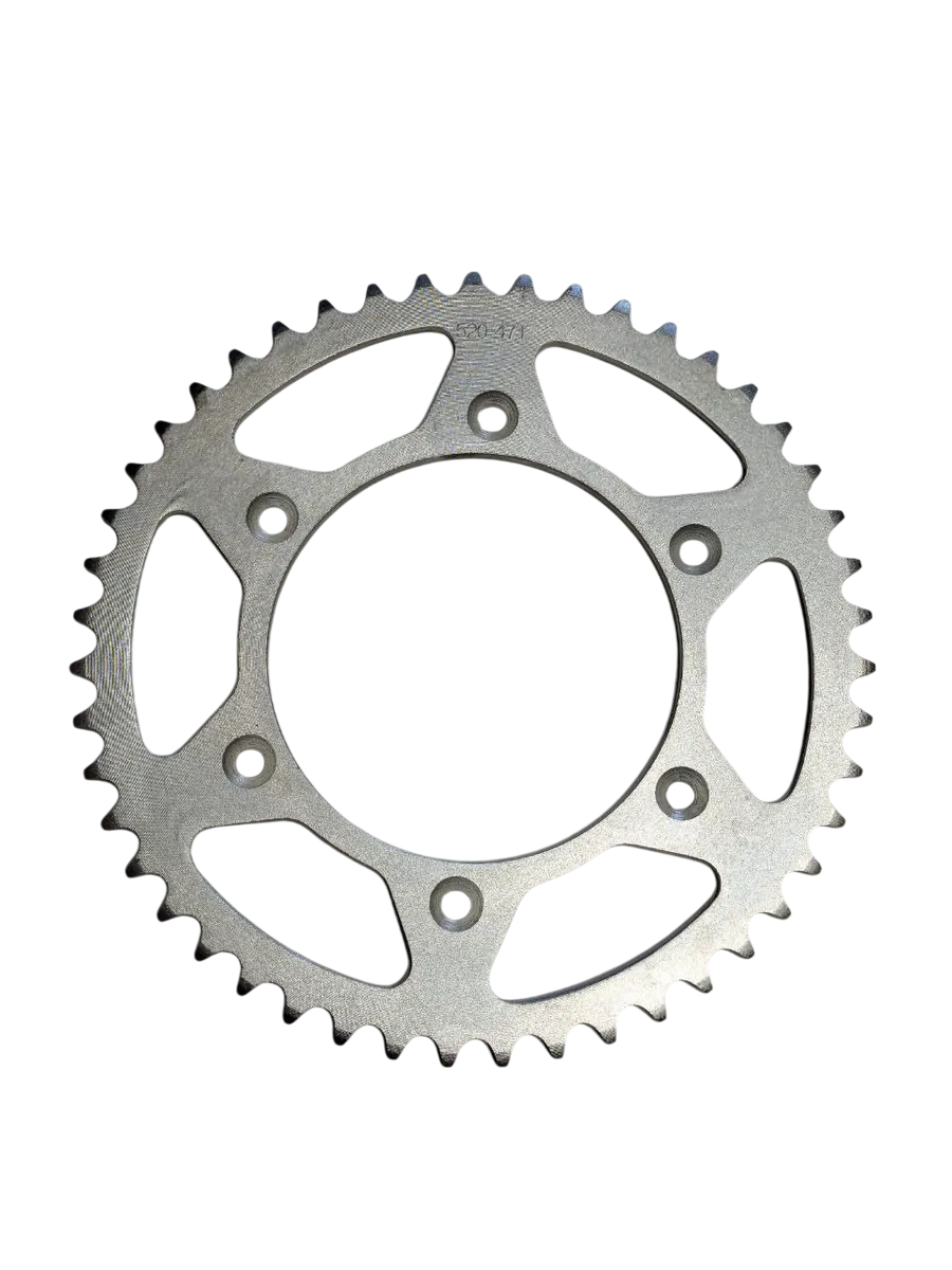 Ведомая звезда 520-47T — это надежный и выверенный компонент трансмиссии для эндуро и кроссовых мотоциклов, рассчитанный на интенсивные нагрузки и эксплуатацию в сложных условиях. Данная модель предназначена для установки под цепь стандарта 520 и имеет 47 зубьев, что делает её оптимальным выбором для тех, кто ищет баланс между тягой на низких оборотах и стабильной скоростью на прямых участках. Звезда подходит для эндуро-покатушек, тренировок, любительских соревнований и активного оффроуда.