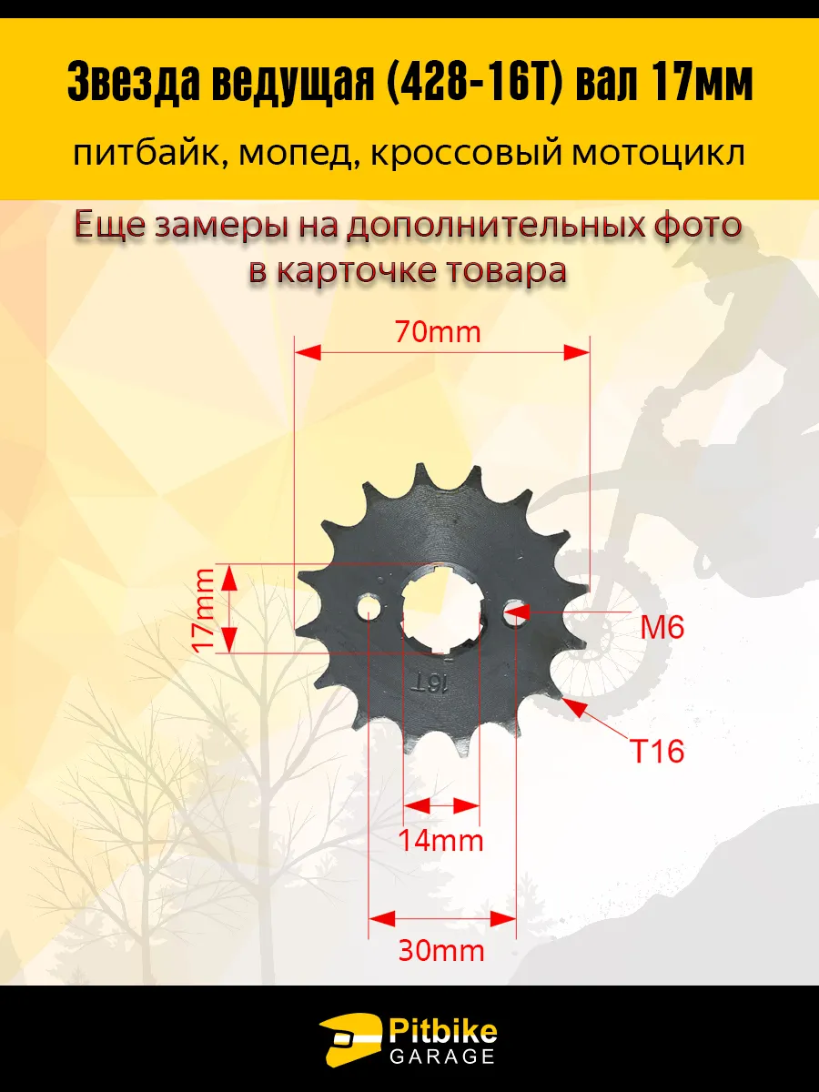 Звезда ведущая 428-16 (17 мм) для мопедов и питбайков — надежная передача крутящего момента!