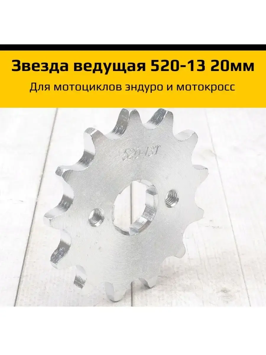 Звезда ведущая для мотоцикла Enduro (520-13) 20мм – надежность и точность в каждой детали! Идеальное решение для мотоциклов Enduro– звезда разработана для экстремальных нагрузок, обеспечивая плавную передачу мощности и долговечность. Совместимость с цепью 520– подходит для большинства современных мотоциклов класса Enduro и кроссовых моделей. 13 зубьев, посадочный диаметр 20мм– точная калибровка для стабильной работы трансмиссии. Прочный материал– изготовлена из высококачественной стали с защитным покрытием для устойчивости к износу и коррозии. Легкий монтаж– стандартная установка без необходимости доработок. Почему выбирают нашу ведущую звезду? Увеличенный ресурс– снижает частоту замены даже при агрессивной езде. Оптимальное сцепление с цепью– минимизирует проскальзывание и шум. Доступная цена– лучшее соотношение качества и стоимости на рынке. Улучшите динамику своего мотоцикла – закажите ведущую звезду 520-13 прямо сейчас!