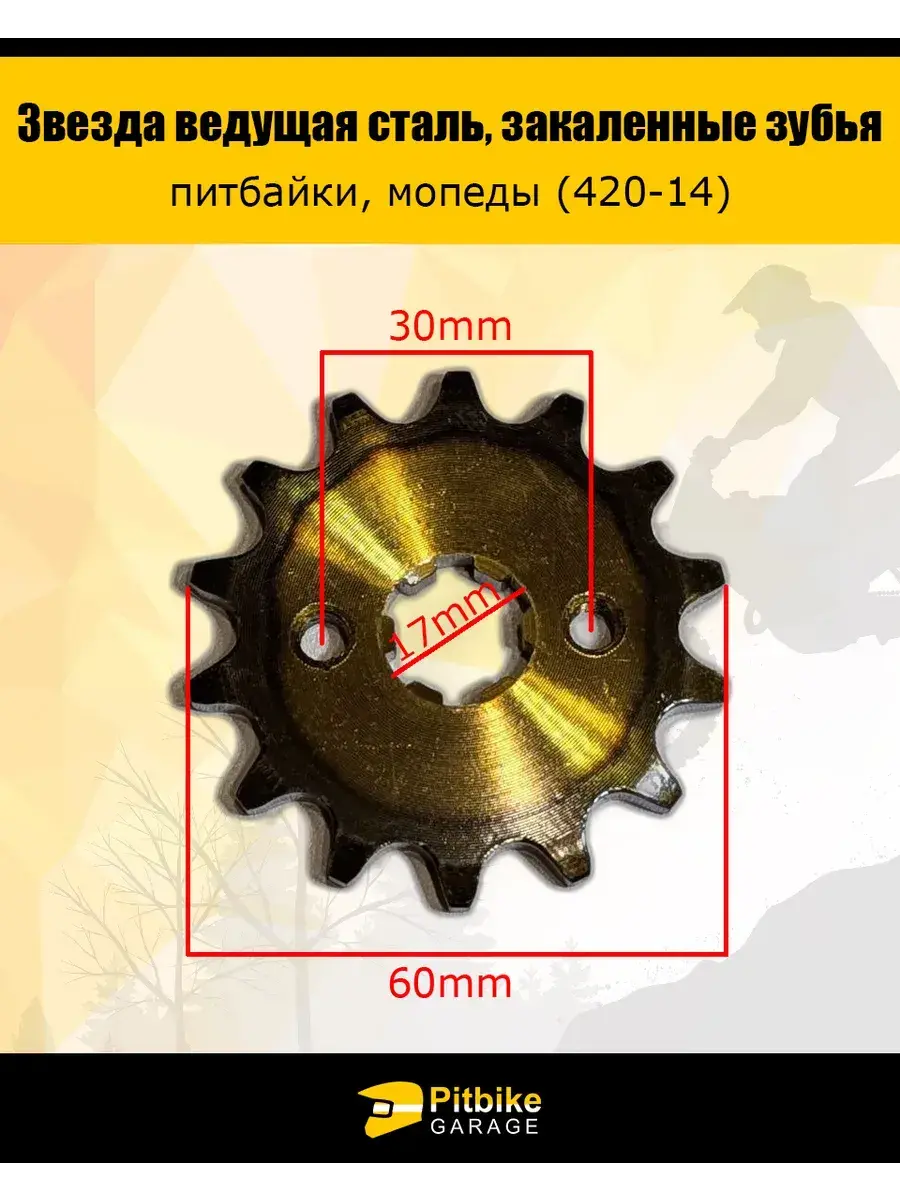 Звезда ведущая для мотоцикла 420-14 17мм с закаленными зубьями представляет собой надежное и качественное решение для любителей мотоспорта. Изготовленная из высококачественной стали, эта звезда ведущая обеспечивает идеальное сочетание прочности и долговечности. Закаленные зубья гарантируют высокую эффективность передачи мощности от двигателя к колесам, что особенно важно для питбайков, где каждый момент может определить исход гонки. Совместимость с питбайком 420-14 17мм делает эту звезду ведущую универсальным выбором для многих моделей, позволяя владельцам мотоциклов улучшить производительность и контроль над своим транспортным средством. Выбирая нашу звезду ведущую для мотоцикла, вы инвестируете в надежность и безопасность своих мотозабав.