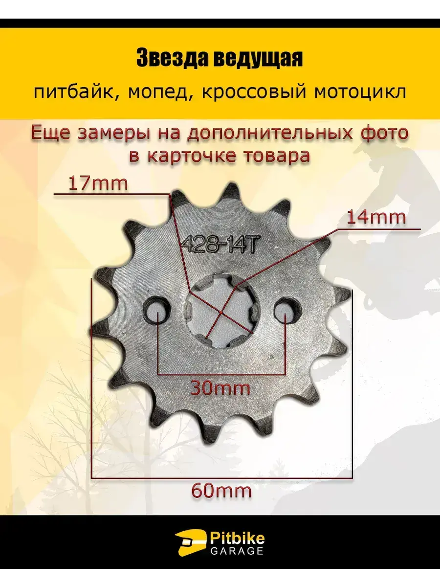 Звезда ведущая для питбайка и мопеда тип 428-14Т — это ключевой элемент, который может существенно изменить динамику и производительность вашего двухколесного друга. В мире мотоспорта и активных поездок каждая деталь имеет значение, и именно звезда 428-14Т способна обеспечить вам непревзойденное управление и отличную скорость. Изготовленная из высококачественной стали, эта звезда гарантирует надежность и долговечность. Она создана для того, чтобы выдерживать серьезные нагрузки и интенсивное использование, что делает её идеальным выбором как для опытных райдеров, так и для новичков. Прочные материалы и точная обработка позволяют звезде работать безупречно даже в самых сложных условиях, будь то городские улицы или извивающиеся трассы. Тип 428-14Т обозначает оптимальное сочетание количества зубьев и шага цепи, что позволяет добиться выдающегося баланса между ускорением и максимальной скоростью. С уменьшенным количеством зубьев на этой звезде вы получите более быстрое ускорение, что особенно важно для тех, кто любит активные маневры и стремительные старты. Каждое движение на байке станет более отзывчивым и предсказуемым, что значительно повышает уровень контроля во время поездки. Установка звезды ведущей проста и не требует специальных навыков. Она совместима с большинством моделей питбайков и мопедов, что делает её универсальным решением для владельцев различных марок. Точная конструкция обеспечивает надежное взаимодействие с цепью, исключая вероятность сбоев в работе трансмиссии. После установки можно быть уверенным в стабильной работе вашего байка. Звезда ведущая тип 428-14Т — это залог уверенности на дороге. С ней вы сможете преодолевать любые преграды и наслаждаться каждой минутой на двух колесах. Это инвестиция в качество, производительность и безопасность, которая оправдает себя с каждой поездкой. Выбор этой звезды означает выбор надежности и эффективности в каждом движении, что делает каждую поездку не только комфортной, но и незабываемой.