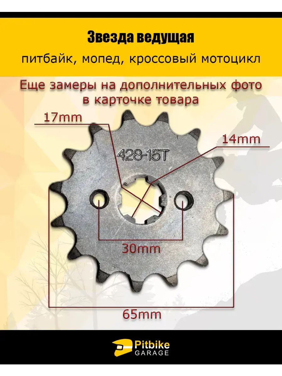 Звезда ведущая для питбайка, мопеда и мотоцикла тип 428-15Т — это ключевой элемент, который играет решающую роль в обеспечении динамики и производительности вашего двухколесного друга. Каждый мотолюбитель знает, что правильная настройка трансмиссии является основой для достижения максимальной скорости и маневренности на дороге или вне ее. Эта звезда разработана с учетом всех требований современных мотоциклистов и готова стать надежным спутником в любых приключениях. Изготовленная из высококачественных материалов, звезда обеспечивает долговечность и устойчивость к износу. Она прошла строгие испытания на прочность и надежность, что гарантирует ее безупречную работу даже в самых сложных условиях. В процессе разработки использовались передовые технологии, позволяющие добиться точной посадки и надежного взаимодействия с цепью. Это особенно важно для тех, кто активно использует свой транспорт в условиях гонок или на сложных маршрутах. Звезда выдерживает высокие нагрузки и обеспечивает плавный ход, что позволяет сосредоточиться на управлении и получать удовольствие от каждой поездки. Тип 428-15Т обозначает оптимальное соотношение между количеством зубьев и шагом цепи, что делает эту звезду универсальным решением для различных моделей питбайков и мопедов. Увеличенное количество зубьев обеспечивает отличное ускорение и улучшает контроль над мощностью двигателя. Это позволяет легко маневрировать в плотном трафике или на извивающихся тропах, придавая уверенность каждому вашему движению. Установка ведущей звезды проста и не требует специальных навыков. Она совместима с большинством моделей питбайков и мопедов, что делает ее отличным выбором для владельцев различных марок. Благодаря точной конструкции, можно быть уверенным в надежной работе трансмиссии после установки.