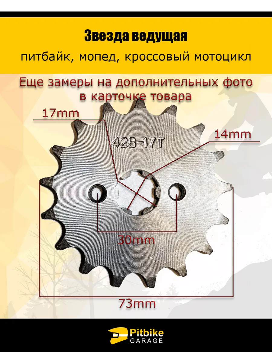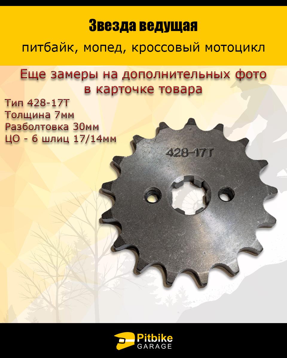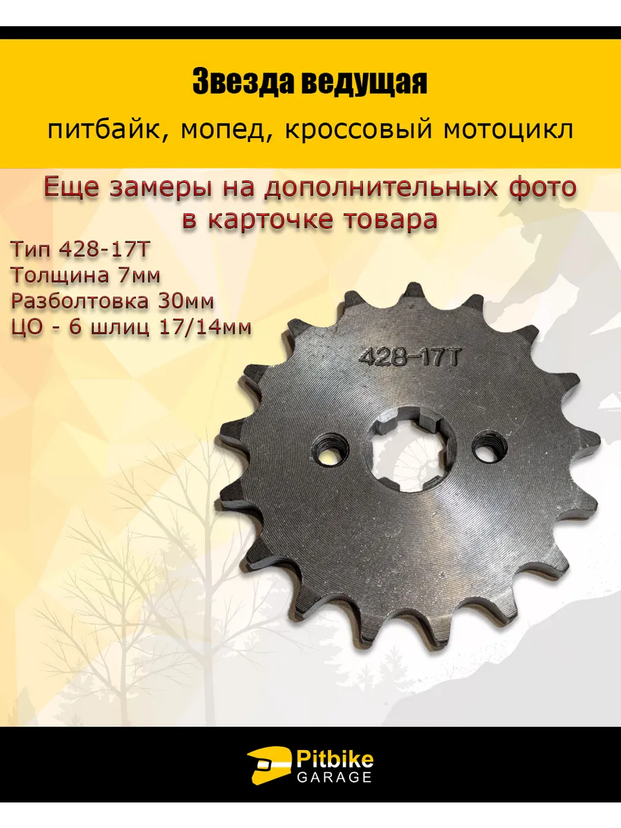 Звезда ведущая для питбайка, мопеда и мотоцикла тип 428-17Т — это не просто деталь, а важнейший элемент, влияющий на динамику и производительность вашего двухколесного друга. В мире мотоспорта и активных поездок на двух колесах каждая деталь имеет значение, и звезда 428-17Т — это тот компонент, который поможет вам достичь новых высот в управлении и скорости.