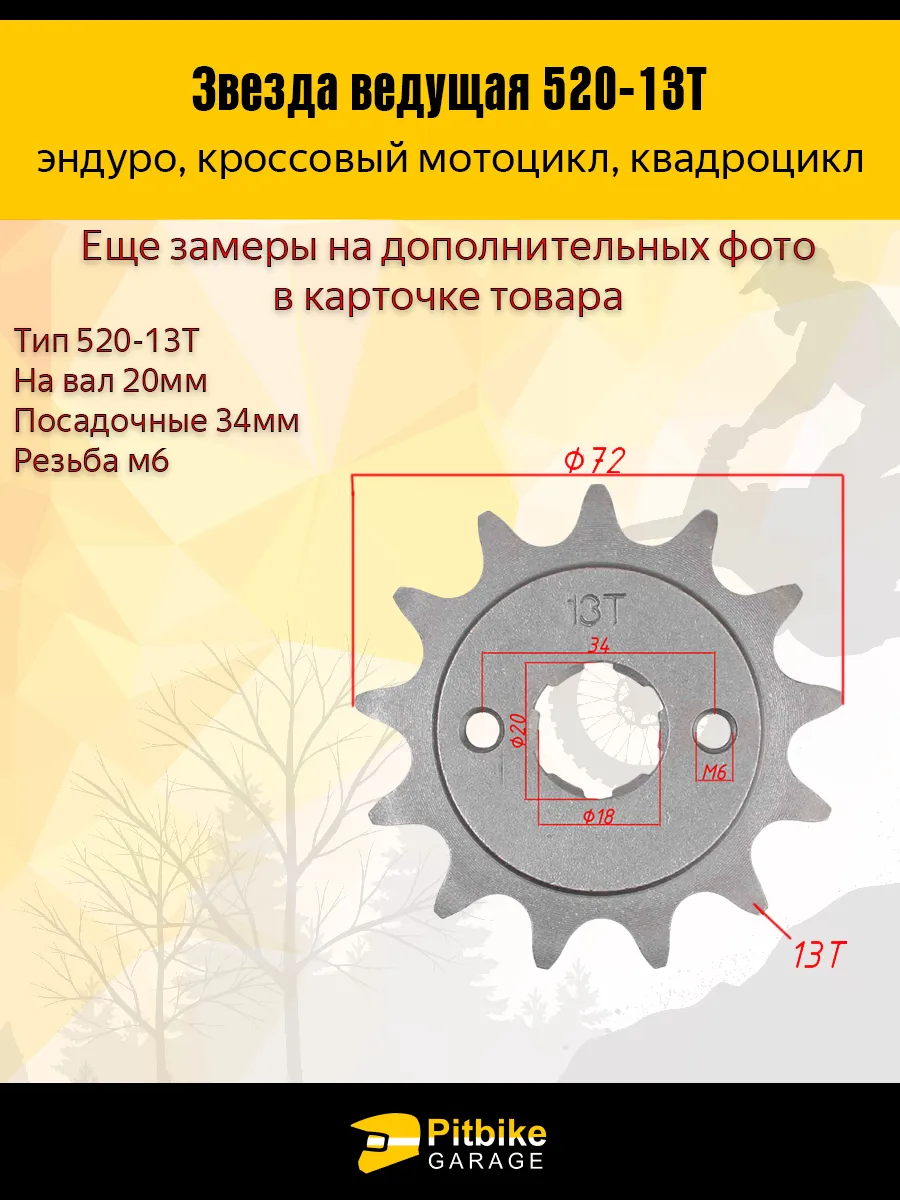 Звезду ведущая для питбайка, мопеда, мотоцикла 520-13Т подходит не только для спортивных моделей, но и для городских мопедов, благодаря чему вы можете адаптировать ваш транспорт под различные стили езды. Улучшите скорость и динамику вашего питбайка или мопеда с помощью этой ведущей звезды и наслаждайтесь каждым моментом на дороге. Наша звезда — это именно то, что вам нужно для надежной и долговечной работы вашего мототранспорта.