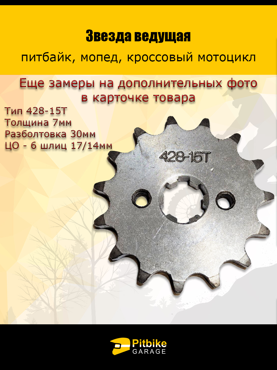 #мотоцикла #звезда_ведущая_для_мопеда #питбайка_428_15т_17мм_сталь