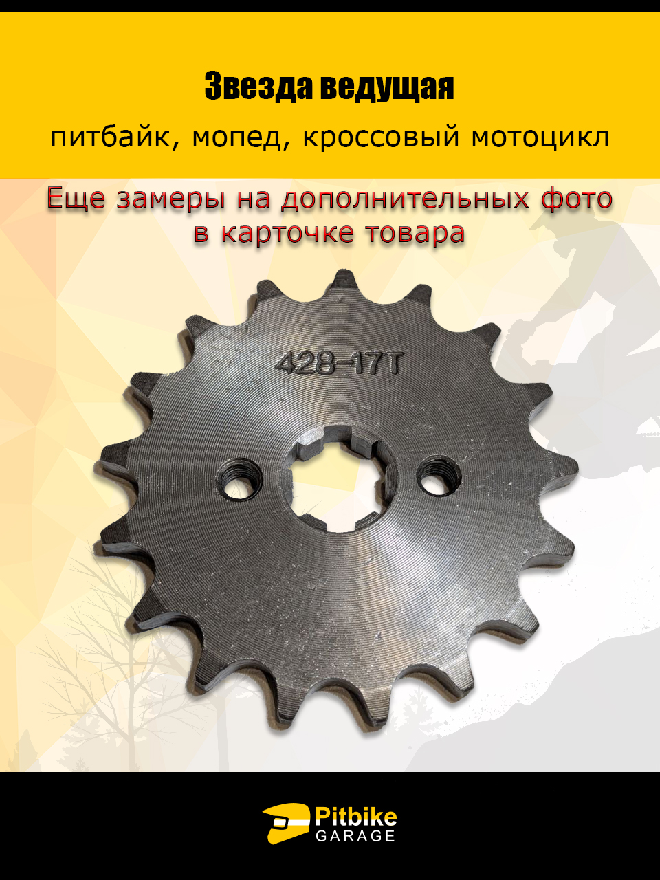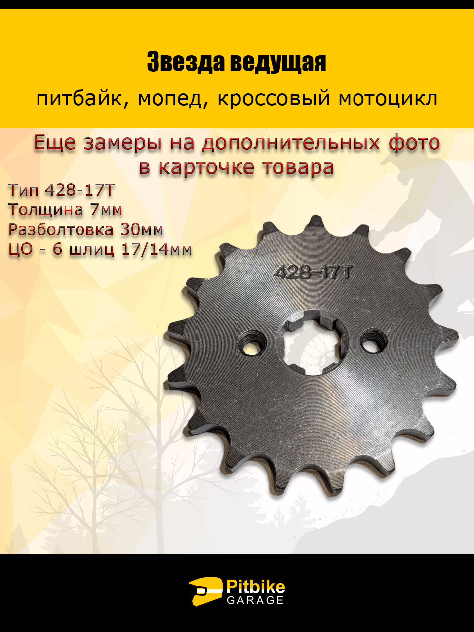 Звезда ведущая для питбайка, мопеда (428-17Т) 17мм сталь 1 штука