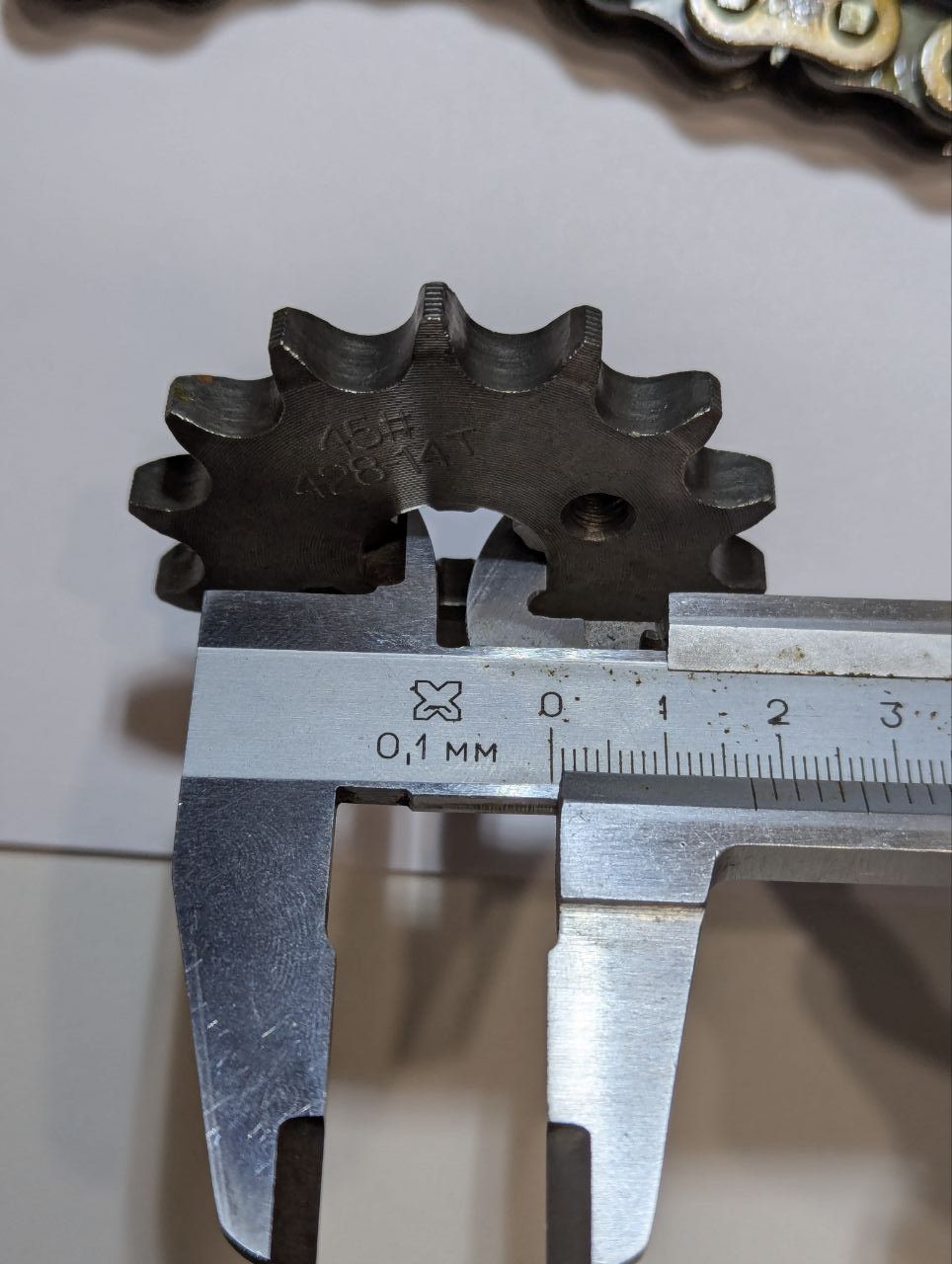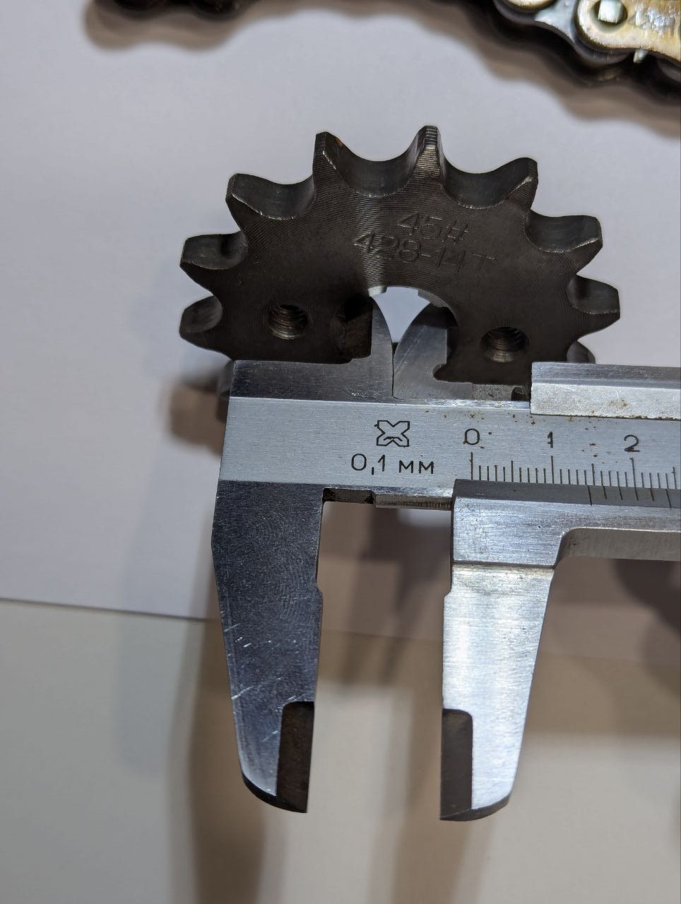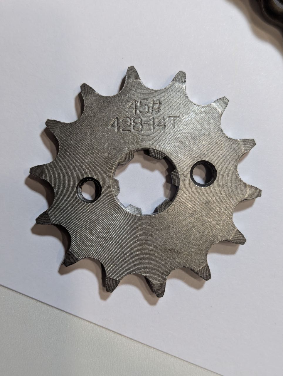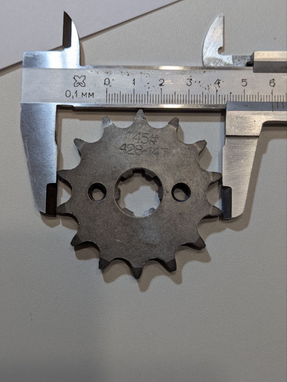 - Ведущая звезда 14T — 17 мм вал, 6 шлицов, толщина 7 мм