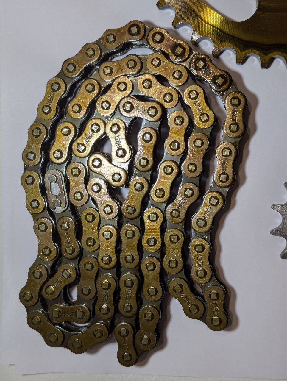 - Цепь 428H — 98 звеньев, замок в комплекте