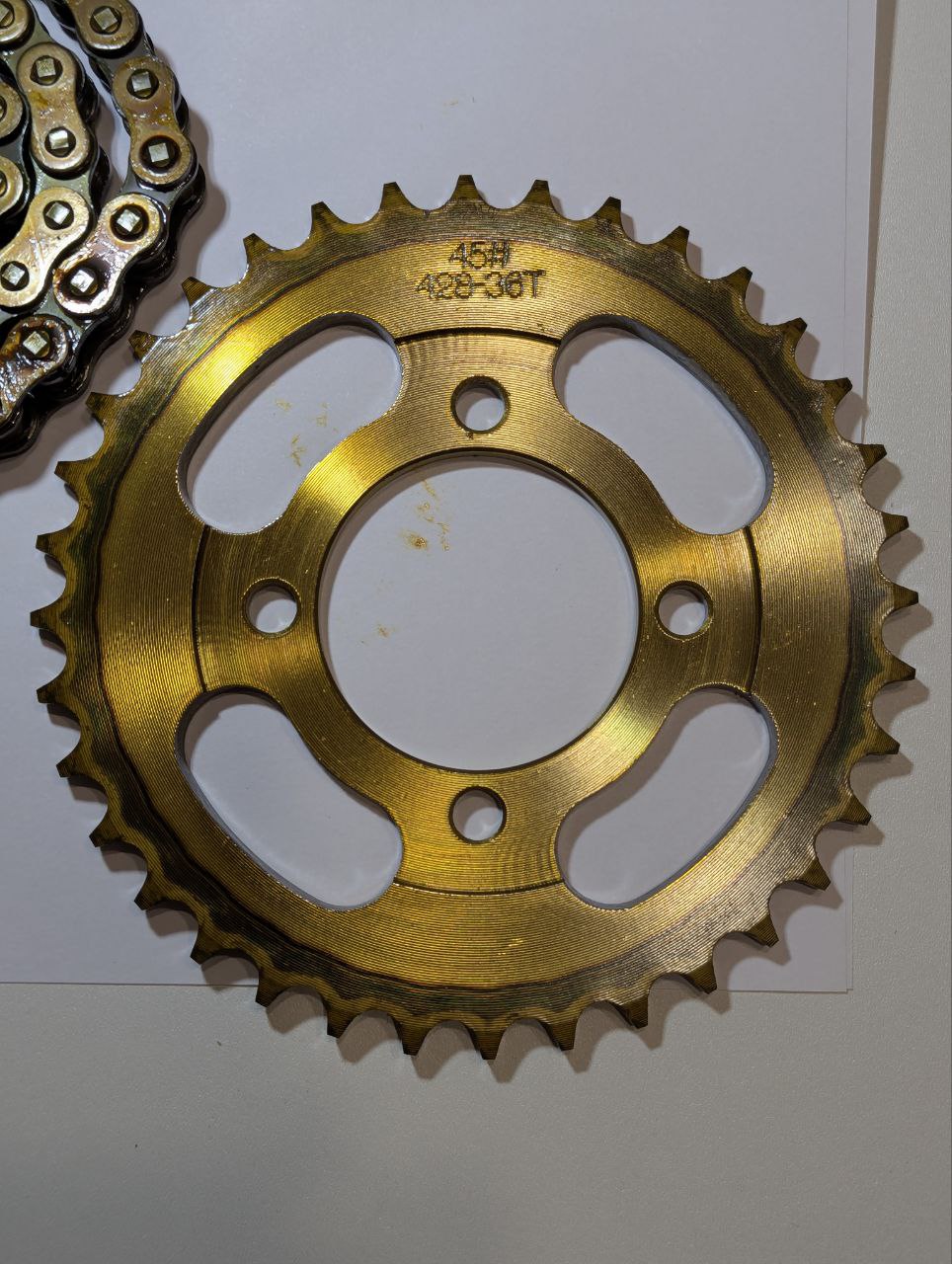 - Ведомая звезда 36T — 4 болта на 70 мм, ЦО 54 мм